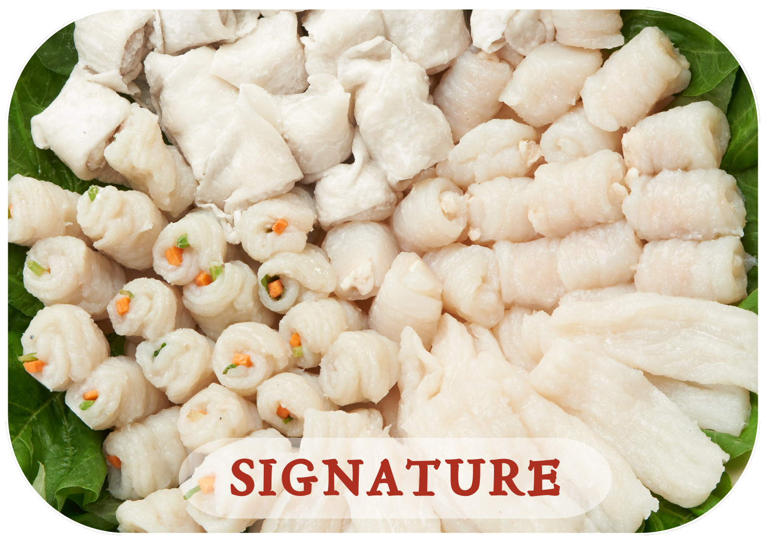Our production process remains the old traditional methods that rarely appear in the market. After the fish paste rolls into dumpling skins with a red wine bottle, it will be wrapped with seasoned pork filling or fish filling with sesame oil, which has become one of the must-have dishes for hot pot.